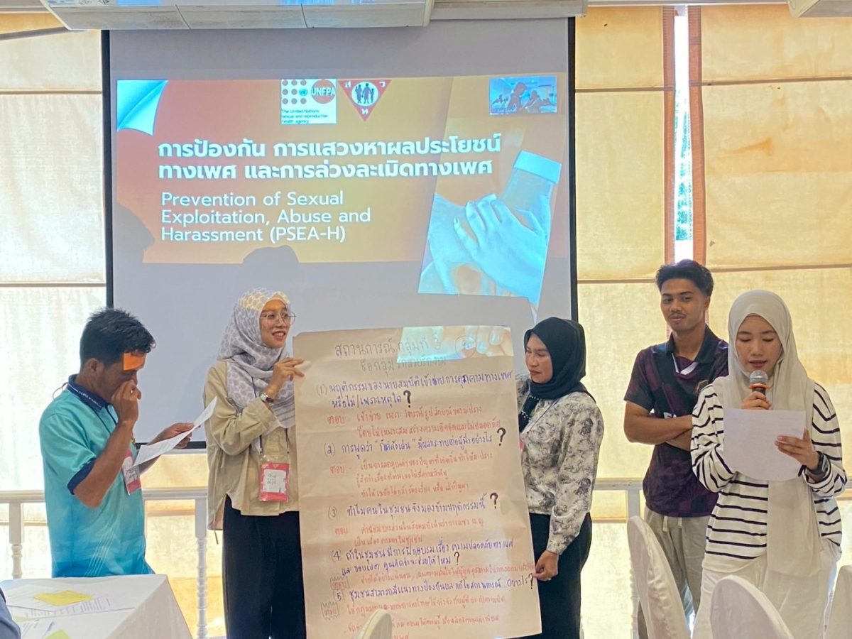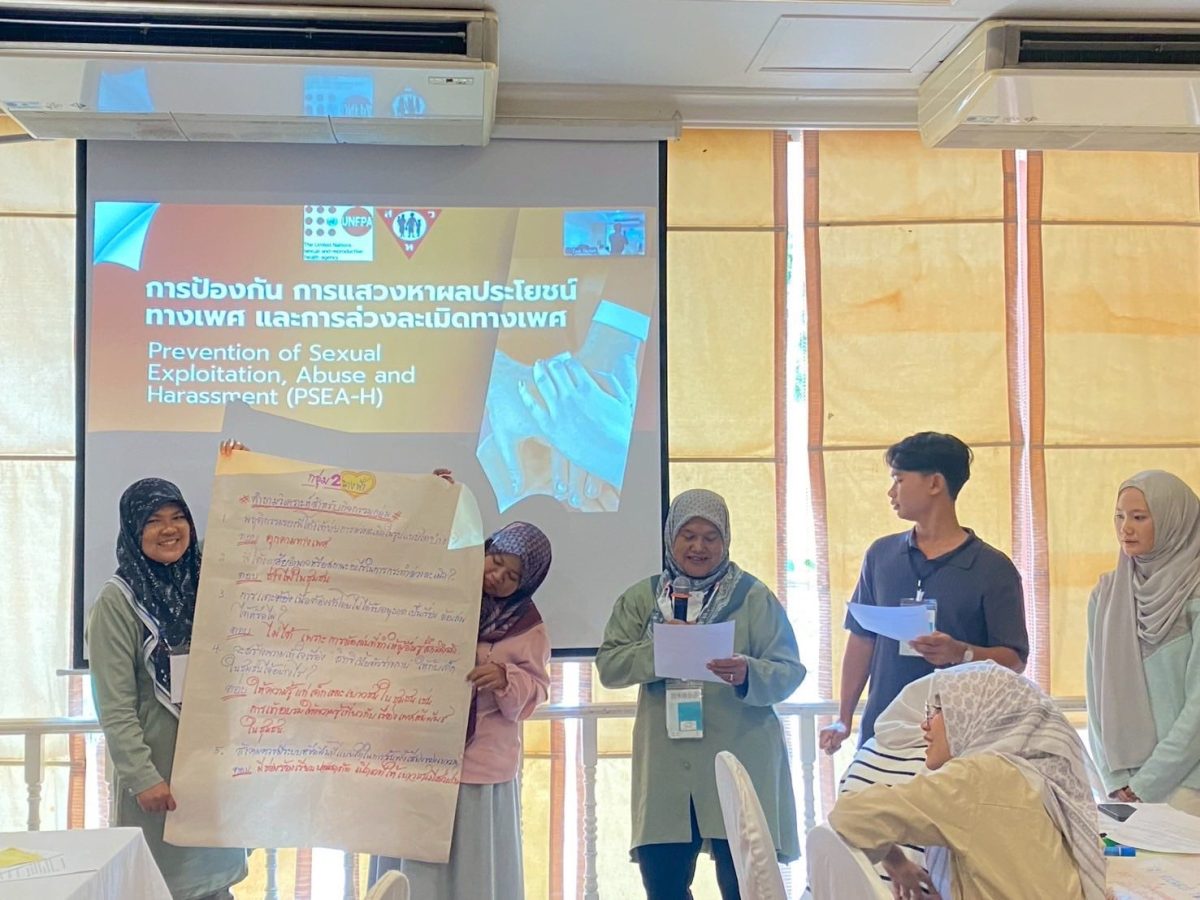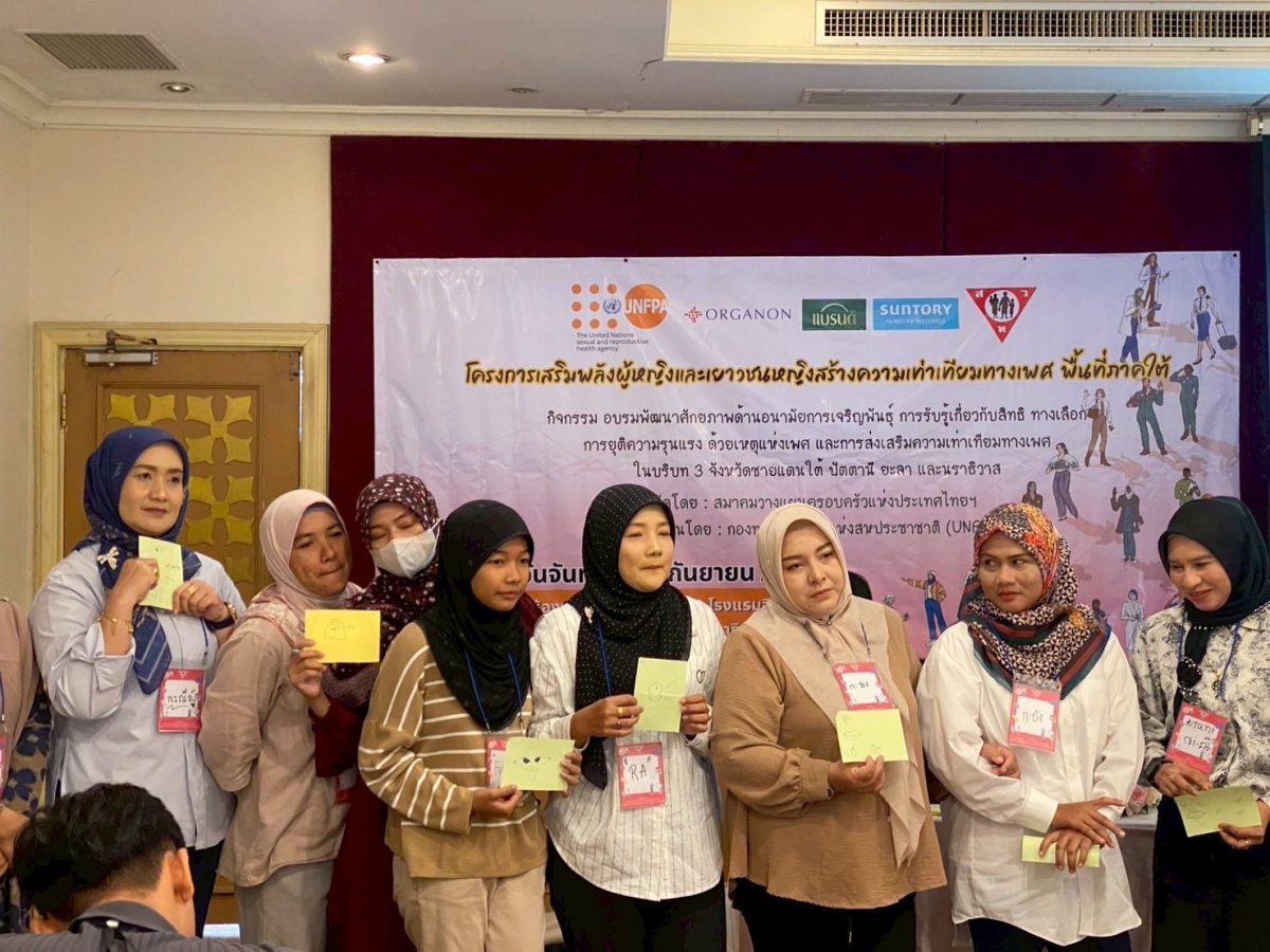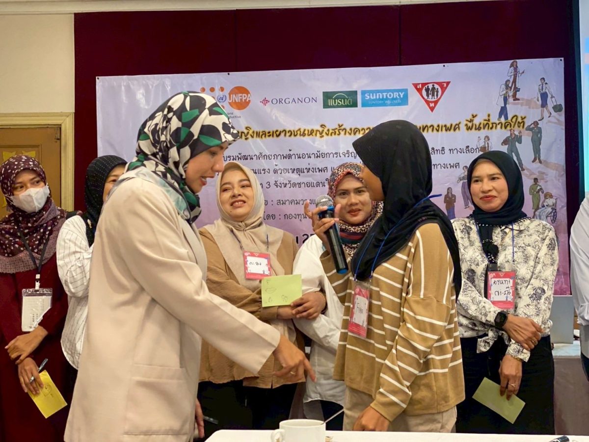 เมื่อวันที่ 29 กันายนที่ผ่านมา สมาคมวางแผนครอบครัวแห่งประเทศไทยฯ (สวท) สำนักงานจังหวัดปัตตานี เดินหน้าขับเคลื่อนงานด้านความเท่าเทียมทางเพศและสิทธิมนุษยชนอย่างต่อเนื่อง จัดกิจกรรมสำคัญเพื่อพัฒนาศักยภาพด้านอนามัยการเจริญพันธุ์และสร้างความตระหนักรู้เกี่ยวกับสิทธิ ณ ห้องประชุมพิกุลทอง โรงแรมอิมพีเรียล จังหวัดนราธิวาส (ครั้งที่ 2) กิจกรรมนี้จัดขึ้นภายใต้โครงการ “เสริมพลังผู้หญิงและเยาวชนหญิง สร้างความเท่าเทียมทางเพศ พื้นที่ภาคใต้” ซึ่งได้รับการสนับสนุนงบประมาณจากกองทุนประชากรแห่งสหประชาชาติ (UNFPA THAILAND) โดยมี คุณไซตง ดอเลาะ ผู้จัดการโครงการ สวท นำทีมคณะทำงานจัดอบรมในครั้งนี้ มีผู้เข้าร่วมกิจกรรมรวมทั้งสิ้น 40 คน สาระสำคัญในการจัดกิจกรรมอบรมในครั้งนี้ คือ มุ่งเน้นสร้างความเท่าเทียมและปลอดภัยในชายแดนใต้ เสริมพลังและสร้างความเข้าใจอย่างลึกซึ้งในประเด็นทางสังคมที่มีความอ่อนไหวในพื้นที่ 3 จังหวัดชายแดนใต้ ประกอบด้วย อนามัยการเจริญพันธุ์ สิทธิและทางเลือกของผู้หญิงและเยาวชนหญิง ความหลากหลายทางเพศ (LGBTQI+) ส่งเสริมความเข้าใจและการยอมรับในอัตลักษณ์ทางเพศที่แตกต่าง การยุติความรุนแรงด้วยเหตุแห่งเพศ หรือการให้ความรู้ในการป้องกันและรับมือกับความรุนแรงทุกรูปแบบ ซึ่งจะช่วยขับเคลื่อนพื้นที่ 3 จังหวัดชายแดนใต้ไปสู่สังคมที่ปลอดภัย เท่าเทียมและเป็นธรรมสำหรับทุกคน