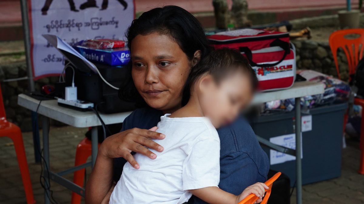หญิงสาวชาวพม่า วัย 28 ปี ซึ่งเข้ามาทำงานในอำเภอแม่สายกว่า 5 ปี และได้มารับบริการหน่วยตรวจสุขภาพเคลื่อนที่ของ สวท พร้อมลูกเล็ก ในพื้นที่วัดแม่สาย เล่าให้ฟังว่า ในช่วงที่น้ำท่วมบ้านพักเป็นช่วงเวลาที่ตนเองและครอบครัวลำบากมาก เพราะไม่มีงานทำ ไม่มีรายได้ สถานประกอบการร้านค้าต่างๆปิดหมด บ้านเช่าถูกน้ำท่วม ยิ่งลำบาก โดยเฉพาะการเลี้ยงดูลูกในช่วงนี้เป็นไปอยากทุลักทุเล เพราะแรงงานอย่างเราเข้าไม่ถึงสิทธิการรักษา หรือหากต้องไปโรงพยาบาลเราเองก็ไม่มีเงิน อยากขอบคุณที่มาตรวจสุขภาพให้กับพวกเราในครั้งนี้ และขอบคุณมากๆที่ให้อุปกรณ์ในการดูแลลูกซึ่งเป็นสิ่งที่จำเป็นกับเราอย่างมาก