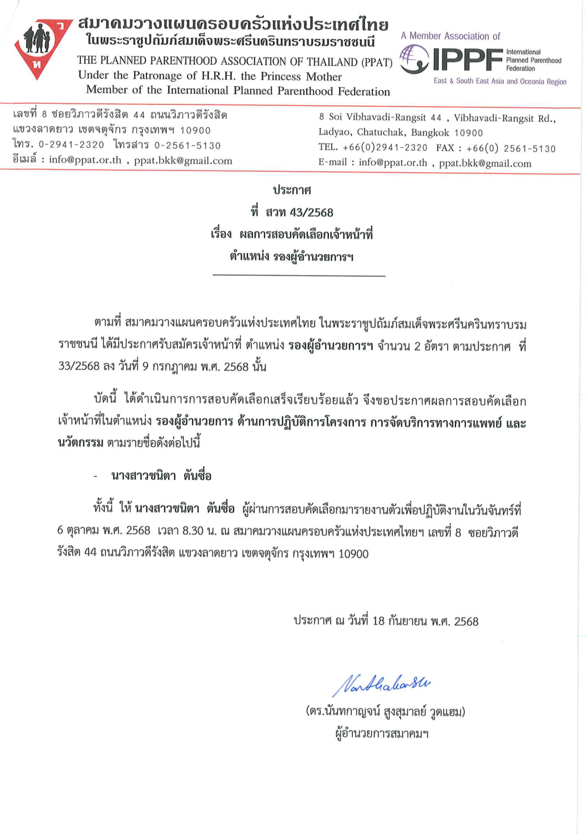 ประกาศผลการสอบคัดเลือกรองผู้อำนวยการ ด้านการปฏิบัติการโครงการ การจัดบริการทางการแพทย์ และนวัตกรรม