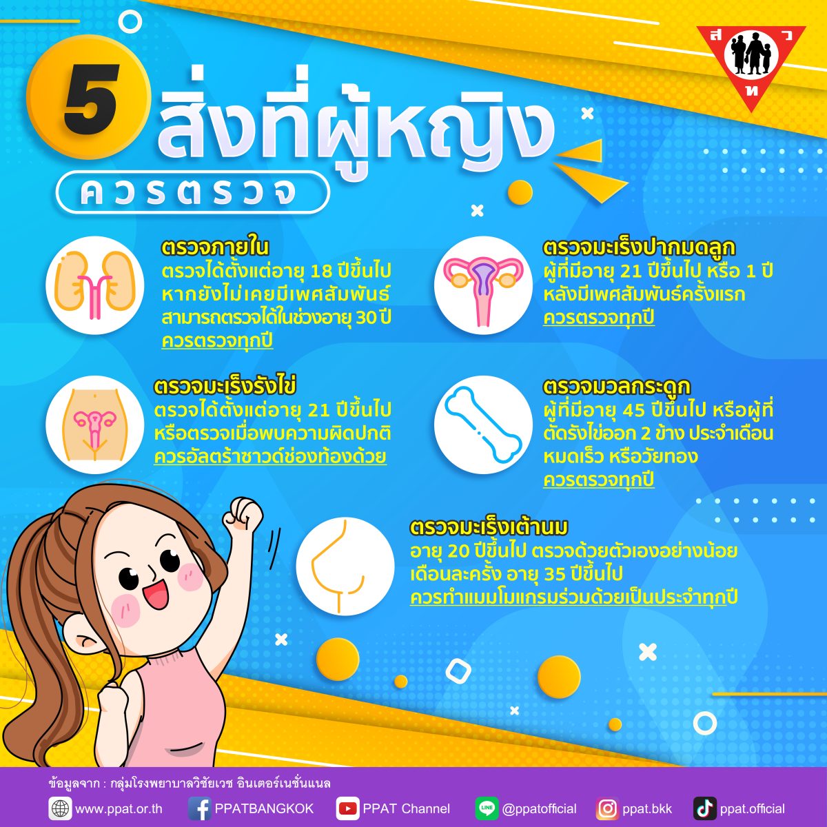 ตรวจมะเร็งปากมดลูก : ผู้ที่มีอายุ 21 ปีขึ้นไป หรือ 1 ปี หลังมีเพศสัมพันธ์ครั้งแรก ❗️ควรตรวจทุกปี❗️