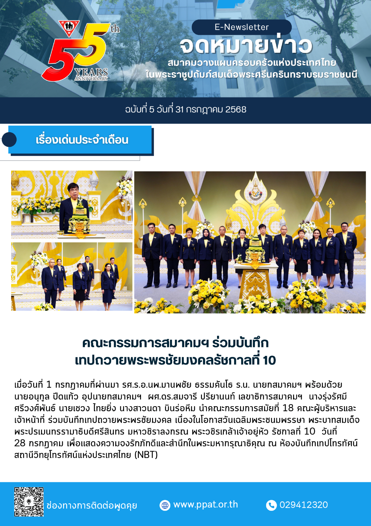 E-Newsletter จดหมายข่าวประชาสัมพันธ์ ฉบับที่ 5 วันที่ 31 กรกฏาคม 2568